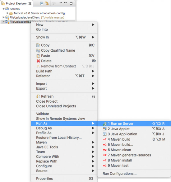 既然您已經(jīng)將Tomcat配置為在Eclipse中運(yùn)行,那么您就可以輕松地在此服務(wù)器上運(yùn)行應(yīng)用程序了。要做到這一點(diǎn),右鍵單擊“Project Explorer”項(xiàng)目資源管理器中的項(xiàng)目,然后轉(zhuǎn)到Run As -> Run on Server