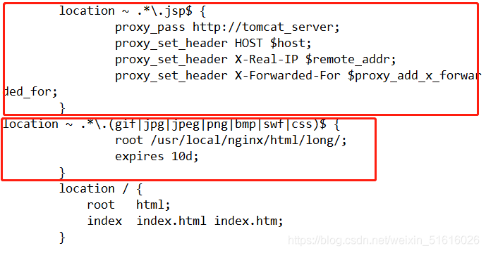 #配置Nginx處理動(dòng)態(tài)頁面請(qǐng)求,將 .jsp 文件請(qǐng)求轉(zhuǎn)發(fā)到Tomcat 服務(wù)器處理