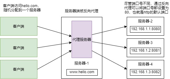 反向代理與正向代理不同,正向代理是代理了客戶端,而反向代理則是代理服務器端。在有多臺服務器分布的情況下,為了能讓客戶端訪問到的IP地址都為同一個網(wǎng)站,就需要使用反向代理。