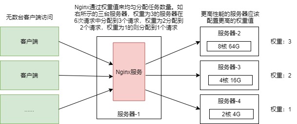 由于不同服務器的配置不同,為了讓性能高的服務器分配到更多的請求,便引入了負載均衡的概念。