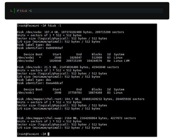 為了本文的目的,我加了一塊 20GB 的磁盤,這也可以是大于 2TB 的磁盤。在你加完磁盤后,使用相同的 fdisk 命令驗證分區(qū)表。