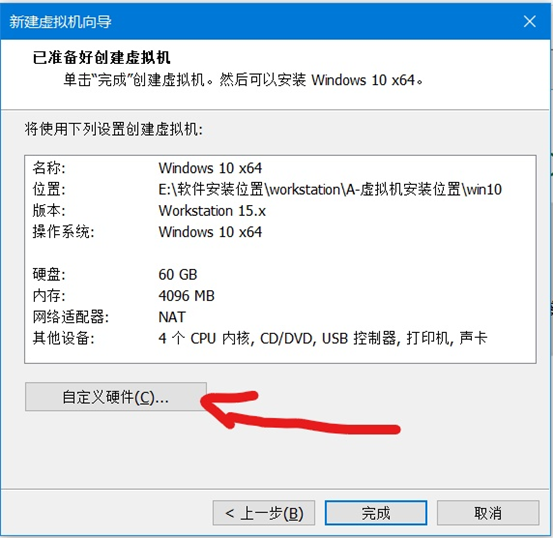 然后繼續(xù)下一步,這時候不要直接點擊完成,點擊自定義硬件