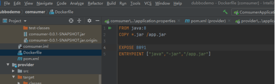 上傳provider和consumer的jar包,和相應(yīng)的Dockerfile文件到服務(wù)器上