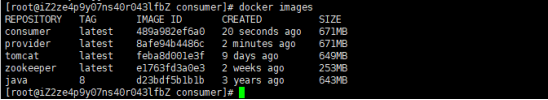 依次啟動(dòng)zookeeper鏡像,provider ,consumer