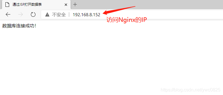 最后使用外部客戶端訪問nginx服務器自動跳轉(zhuǎn)到tomcat的jsp文件提示連接數(shù)據(jù)庫成功