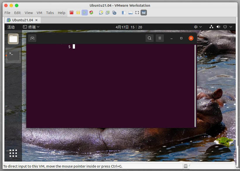 首先我們進入ubuntu系統(tǒng)桌面,輸入組合鍵ctrl+alt+t快捷鍵打開我們的終端窗口界面。