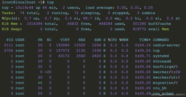 top命令是Linux下常用的性能分析工具,能夠?qū)崟r(shí)顯示系統(tǒng)中各個(gè)進(jìn)程的資源占用狀況,類似于Windows的任務(wù)管理器。