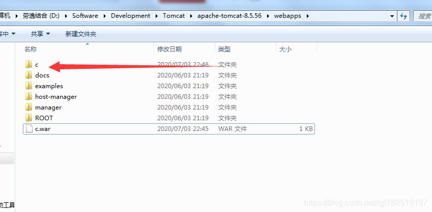 再把c.war放進webapps目錄下,發(fā)現(xiàn)自動解壓了