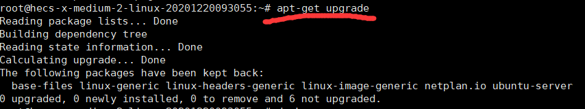 在布置好云服務(wù)器后,我們使用apt-get update, apt-get upgrade 更新信息。