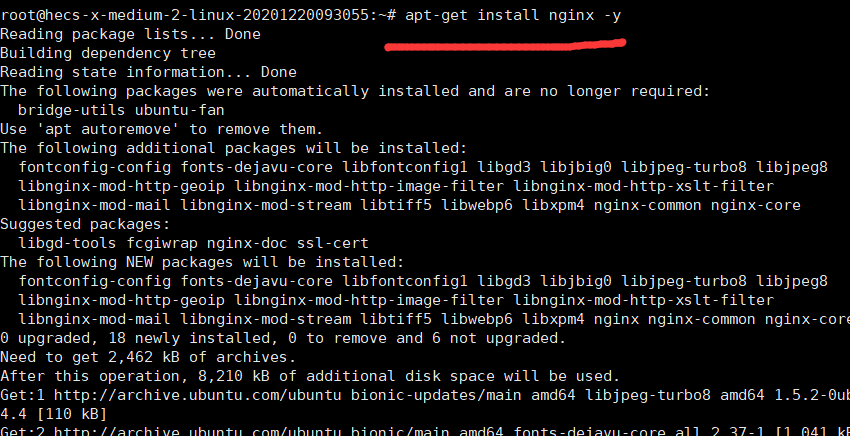 接下來(lái)就是安裝nginx了,常規(guī)操作apt-get install nginx