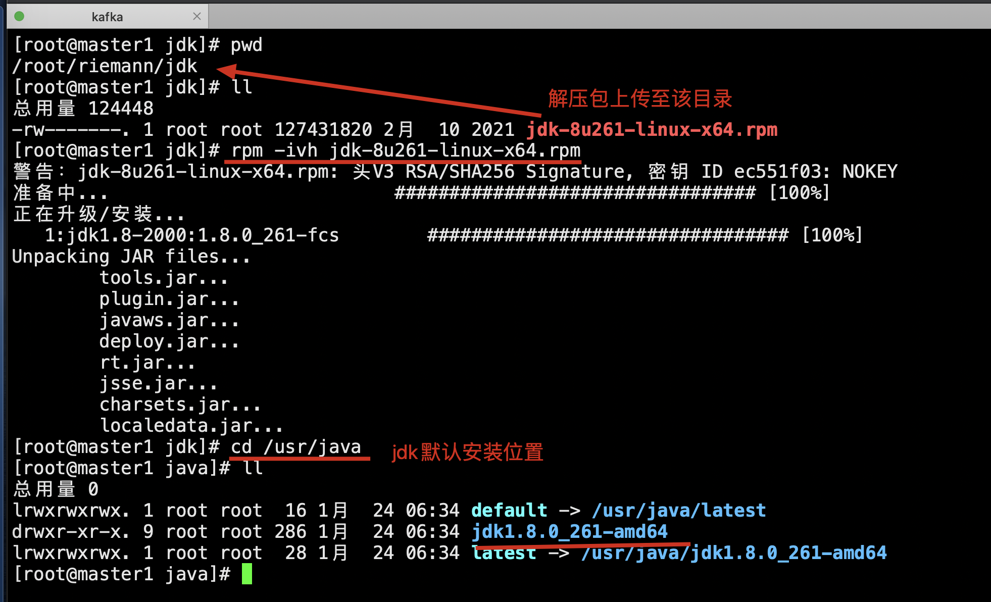 1.1.1 上傳jdk-8u261-linux-x64.rpm到服務(wù)器并安裝