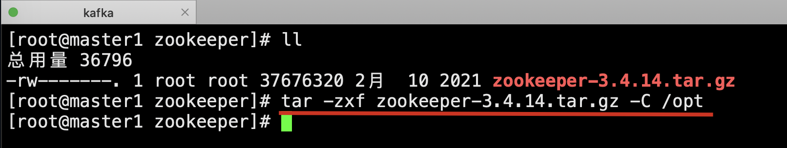 # 解壓zk到指定目錄 tar -zxf zookeeper-3.4.14.tar.gz -C /opt