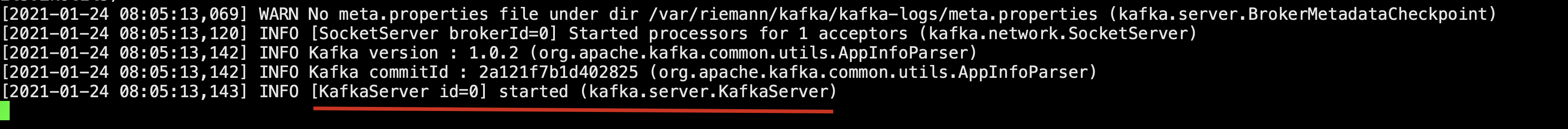 啟動成功,可以看到控制臺輸出的最后一行的started狀態(tài):此時(shí)kafka安裝成功。