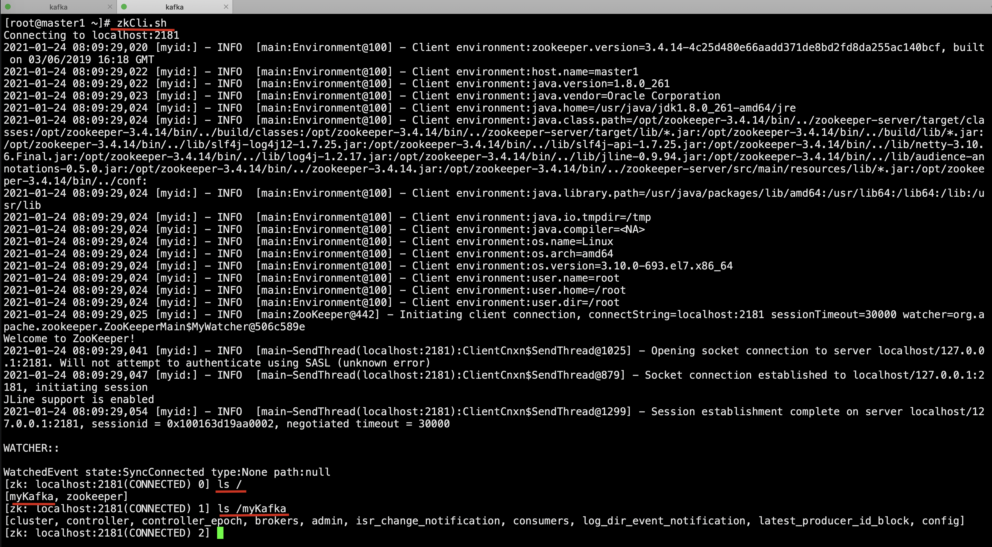 后面的myKafka是Kafka在Zookeeper中的根節(jié)點(diǎn)路徑