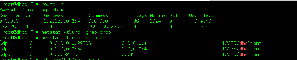 (3)將整個網(wǎng)絡(luò)重啟之后,如果執(zhí)行的結(jié)果找到的正確的DHCP主機,那么以下幾個文件可能會被修改。