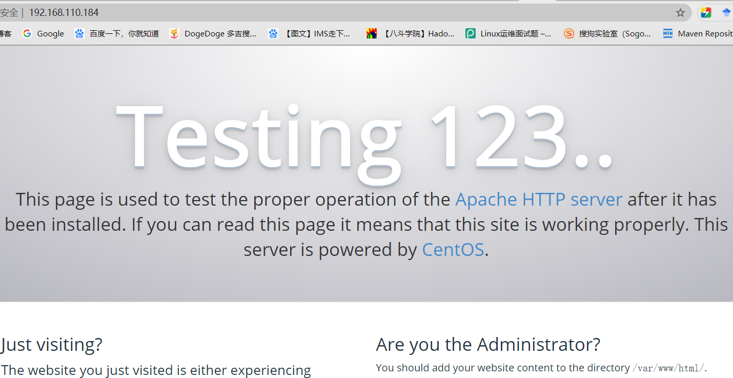 在瀏覽器里訪問http://192.168.110.184/,如果出現(xiàn)如下界面說明Apache服務(wù)安裝成功