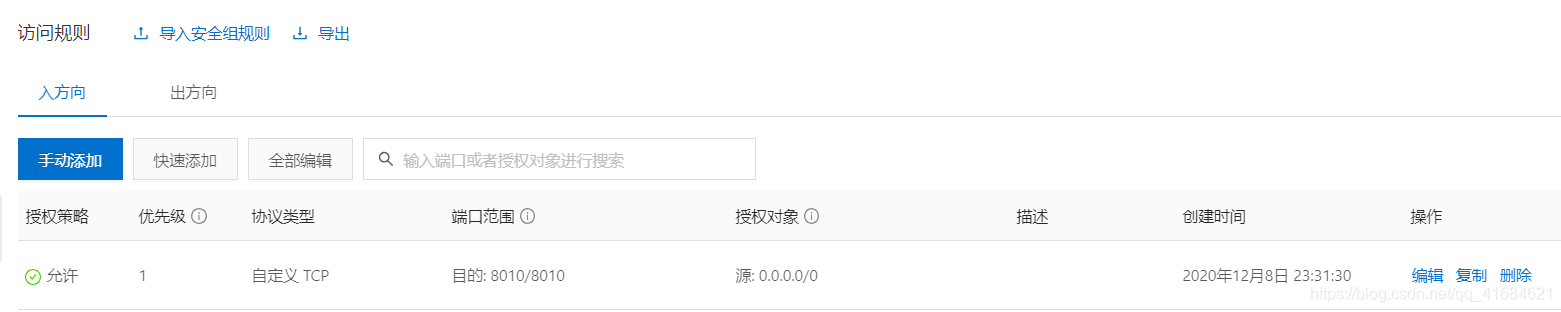 注意:云服務(wù)器上安全組要打開(kāi) 8010 端口號(hào) 且 防火墻也要放行 8010