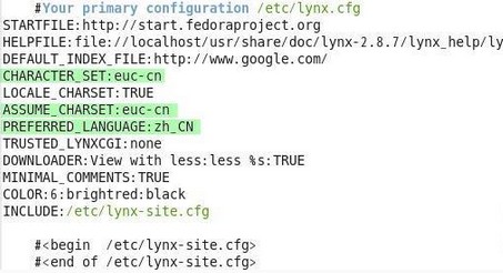 2.設(shè)置lynx,使用vi修改/etc/lynx.cfg,修改參數(shù)在下圖中用綠色標(biāo)明: