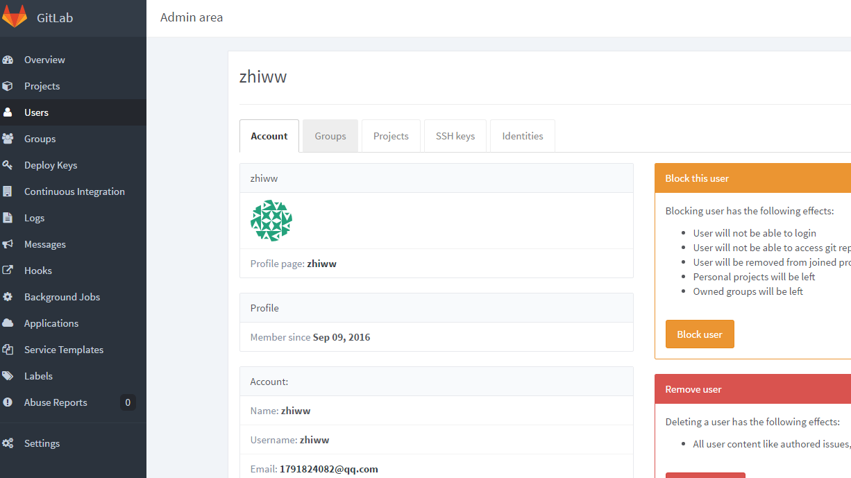 根據(jù)報錯信息大概鎖定用戶的權限問題,安裝gitlab-ce會自動添加用戶四個用戶: