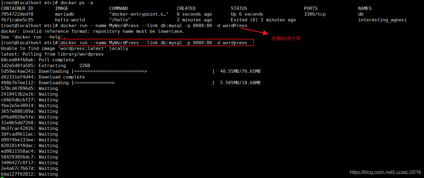 通過--link db:mysql參數(shù)把WordPress和數(shù)據(jù)庫建立連接
