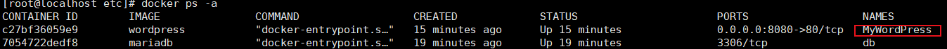 安裝wordpress博客系統(tǒng):docker run --name MyWordPress --link db:mysql -p 8080:80 -d wordpress