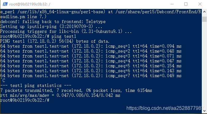 如果 test1、test2 容器內(nèi)中無 ping 命令,則在容器內(nèi)執(zhí)行以下命令安裝 ping(即學(xué)即用:可以在一個容器里安裝好,提交容器到鏡像,在以新的鏡像重新運行以上倆個容器)。