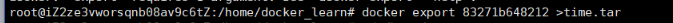 docker export 83271b648212 >time.tar //導出容器,這里這個數(shù)字是容器id,會得到一個 tar壓縮包