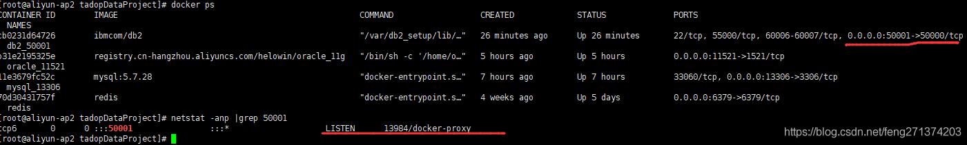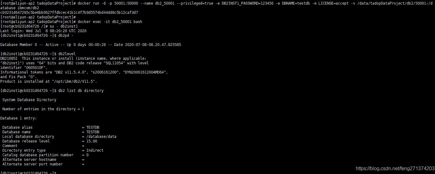 -v /data/tadopDataProject/db2/50001:/database:掛載目錄,其中/data/tadopDataProject/db2/50001 是宿主機的目錄