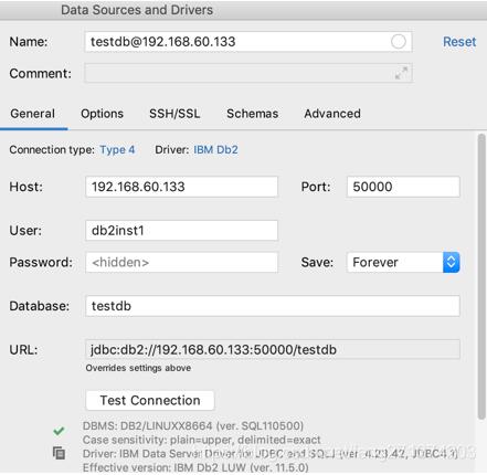 version: "2.2" services: db2: image: ibmcom/db2 container_name: db211.5 privileged: true environment: LICENSE: accept DB2INST1_PASSWORD: 你的密碼 DBNAME: TESTDB volumes: - ./db2data:/database ports: - 50000:50000