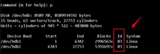 輸入P打印一下磁盤分區(qū)信息,比如ID類型是83