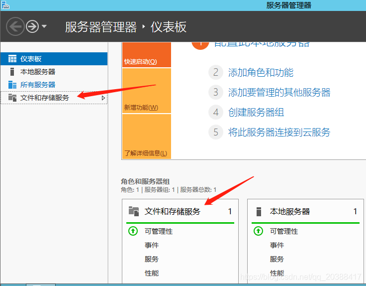 安裝完成后在服務器管理界面會有一個文件和儲存服務