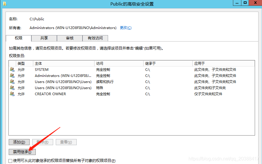 我們先禁用繼承,然后在添加自己要設定的用戶權(quán)限