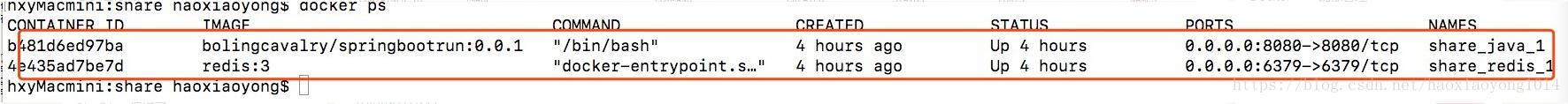 redis: image: redis:3 ports: - "6379:6379" volumes: - /tmp/data:/data - java: image: bolingcavalry/springbootrun:0.0.1 links: - redis:redishost volumes: - /usr/local/work/share:/usr/Downloads ports: - "8080:8080" tty: true