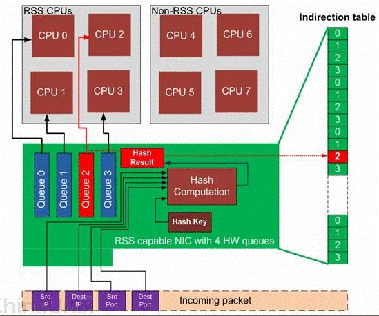 這樣,CPU的各個(gè)核可以并發(fā)的收包,就不會應(yīng)為一個(gè)核不能滿足需求,導(dǎo)致網(wǎng)絡(luò)IO性能下降。
