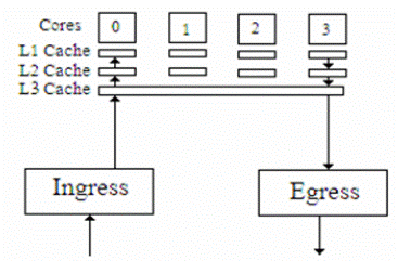 一些多隊(duì)列網(wǎng)卡驅(qū)動(dòng)實(shí)現(xiàn)的不是太好,在初始化后會出現(xiàn)圖4.1中同一個(gè)隊(duì)列的tx、rx中斷綁定到不同核上的問題,這樣數(shù)據(jù)在core0與core1之間流動(dòng),導(dǎo)致核間數(shù)據(jù)交互加大,cache命中率降低,降低了效率。