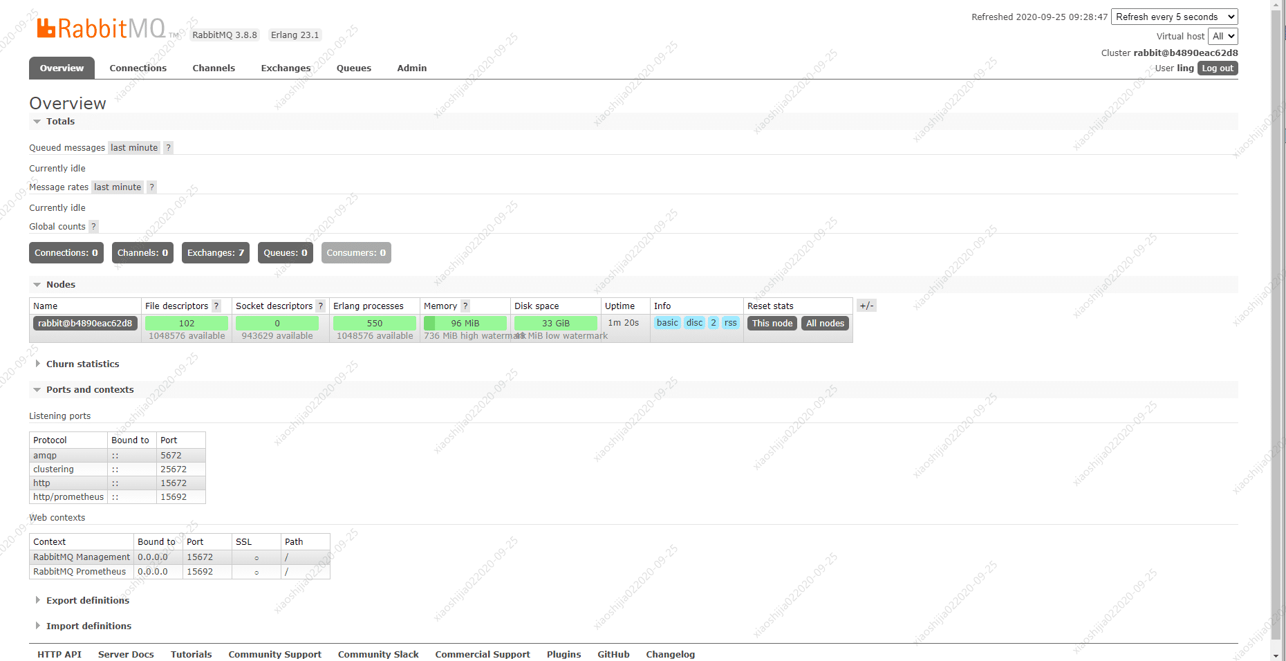 -e RABBITMQ_DEFAULT_USER=ling:設(shè)置用戶名為 ling