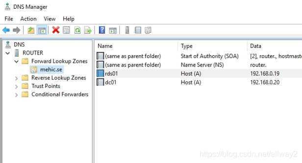 在創(chuàng)建新證書之前,我們需要配置DNS,以便外部用戶可以將RD網(wǎng)關的名稱解析為正確的IP地址。您將在外部DNS(托管dns或ISP上的DNS)上配置它,而我們對此沒有控制權,但可以從Internet進行訪問。
