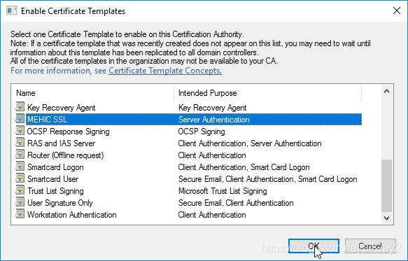 選擇我們新創(chuàng)建的證書,然后單擊“確定”。單擊“確定”后,您將可以在已發(fā)布到CA的證書列表中看到它。