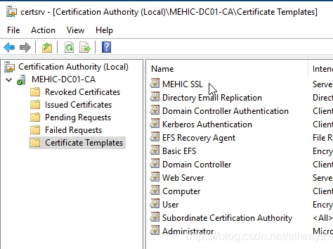 在現(xiàn)實生活中,您可以從公共CA(GoDaddy,VeriSign等)購買此證書。該證書需要包含您將用作RD Web訪問URL的FQDN(我的是rds01.mehic.se)。它必須為.pfx格式,并且您需要包含私鑰。就我而言,我將使用我的專用CA。(如果您不熟悉或沒有私有CA,請查看我的Mastering Windows Server 2016系列,以了解如何安裝證書頒發(fā)機構)