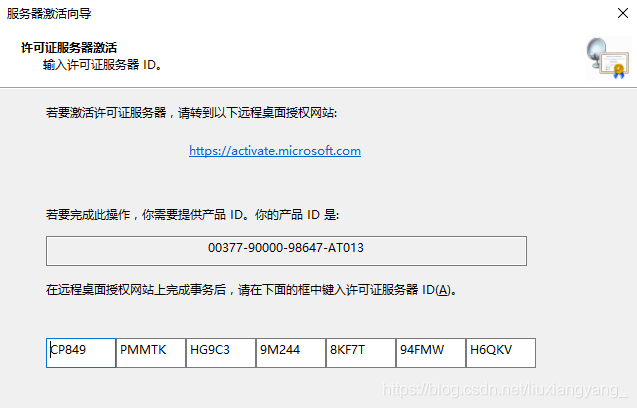 根據(jù)提示打開遠程桌面授權網(wǎng)站,選擇啟用許可證服務器: