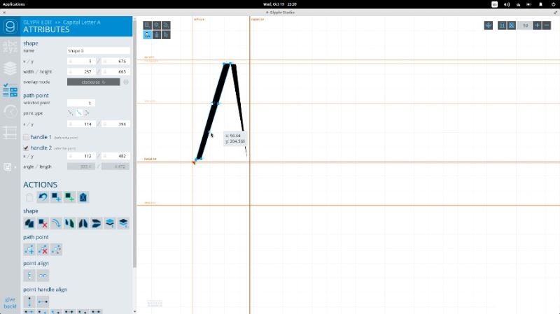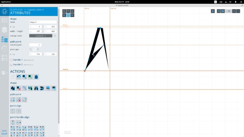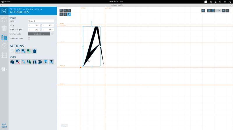 完成進入編輯界面后, 你可以從屏幕左邊的面板中選擇字母,然后在右邊的繪制區(qū)域設(shè)計。我選擇 A 字母的圖標(biāo)開始編輯它。