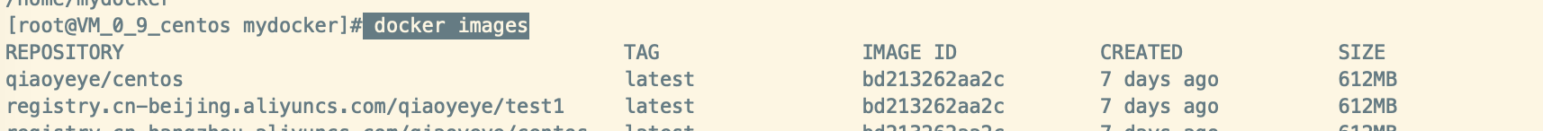 sudo docker tag bd213262aa2cqiaoyeye/centos:latest