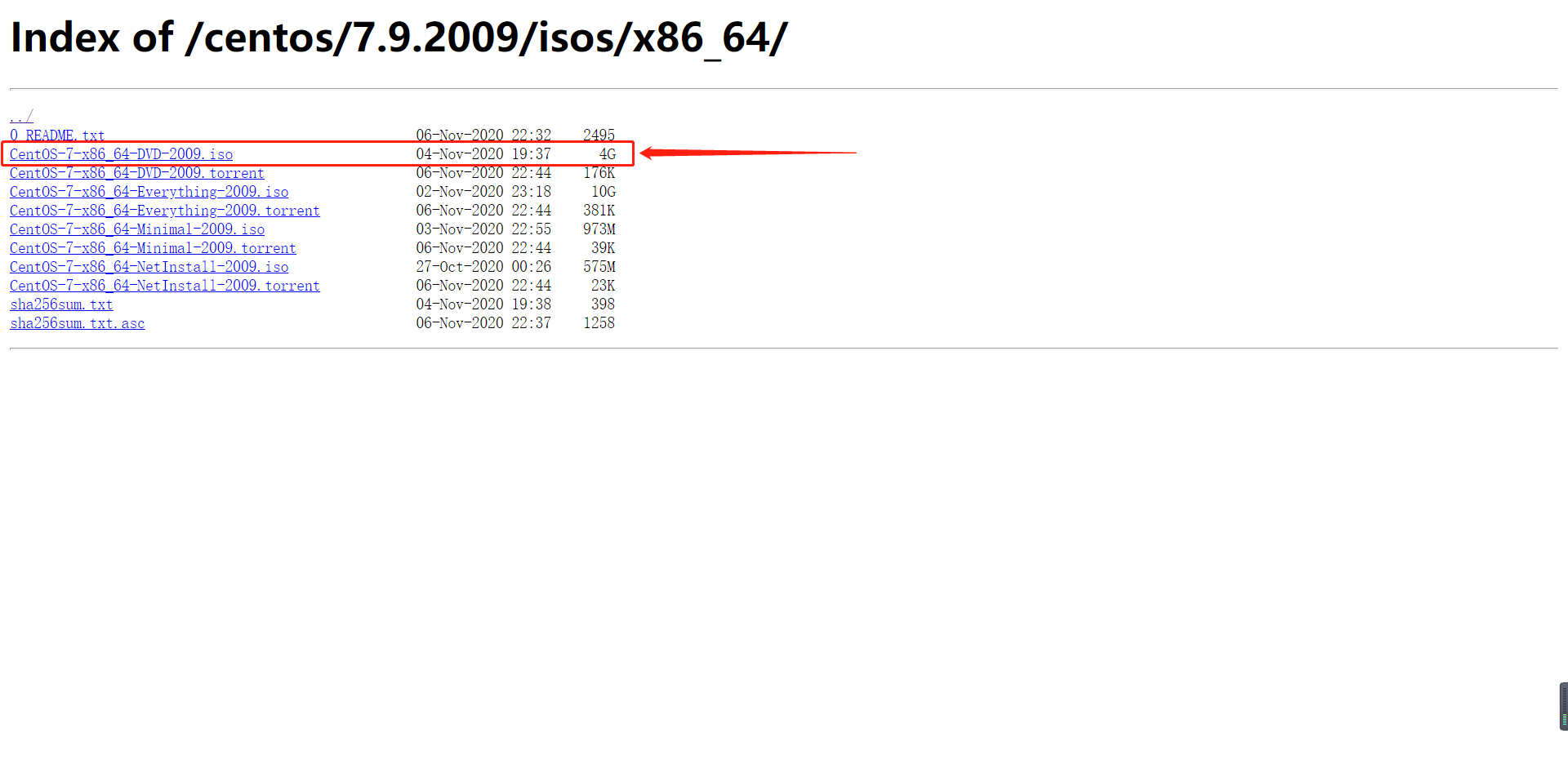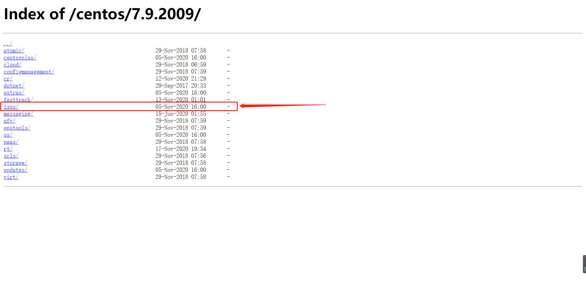 1.2 選擇相應(yīng)版本,如:7.9.2009;注意:該倉(cāng)庫(kù)地址不對(duì)較老版本鏡像進(jìn)行保留,若需要請(qǐng)通過(guò)官方地址https://www.centos.org/download/進(jìn)行下載
