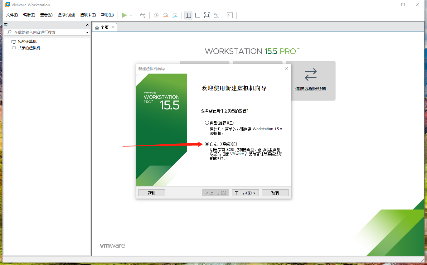 2.2 在新建虛擬機(jī)向?qū)?/code>的第一步選擇自定義(高級(jí))選項(xiàng)