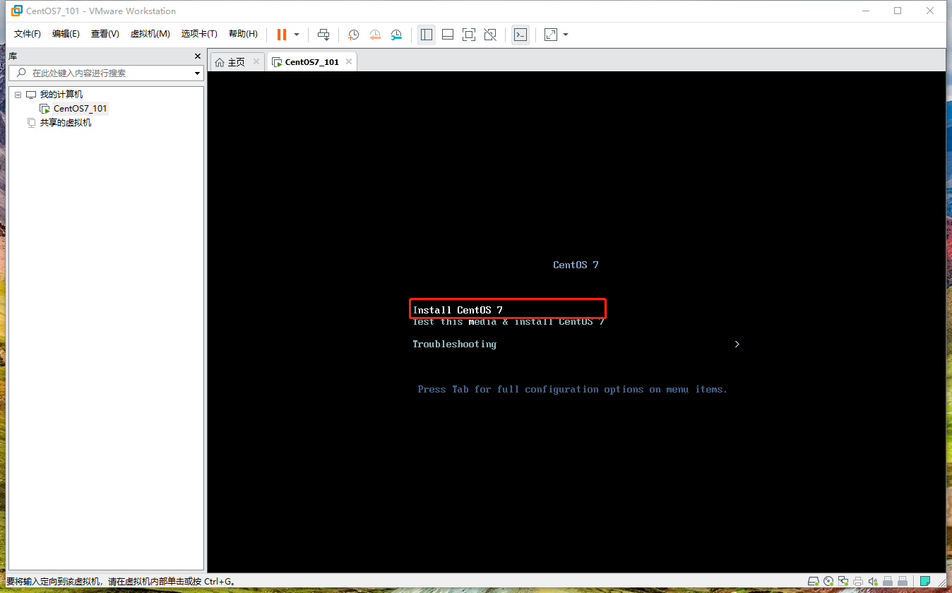 2.15 在系統(tǒng)安裝的第一步選擇Install CentOS 7