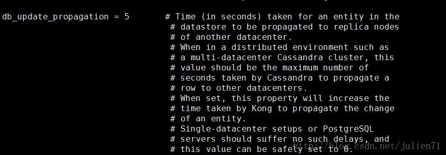 docker exec -it kong bash //進(jìn)入kong容器 cd etc/kong //進(jìn)入該目錄下 cp kong.conf.default kong.conf //復(fù)制kong.conf.default文件為kong.conf文件 vi kong.conf //修改db_update_propagation這個(gè)配置項(xiàng)