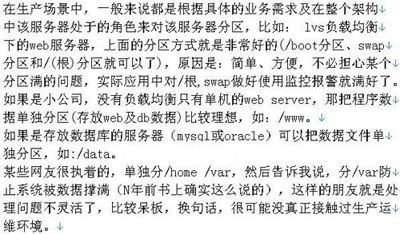 同理,服務(wù)器操作系統(tǒng)在分區(qū)時(shí)也是如此,到底分3個(gè)區(qū),4個(gè)區(qū),要不要分/home/ /var,這也要看我們的業(yè)務(wù)需求,和運(yùn)維規(guī)范或者說運(yùn)維領(lǐng)導(dǎo)的喜好。