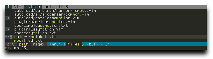 ctrlp Vim的文件查找器Ctrlp是替代命令-T插件用100%的VIM插件。它支持一種直觀快速的方法從文件系統(tǒng)(使用正則表達式和模糊查找),打開緩沖區(qū)和最近使用的文件加載文件。