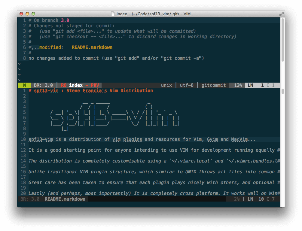 spf13-vim是一個跨平臺和VIM插件和各種資源的Vim,gVim 和MacVim是高度可定制的。