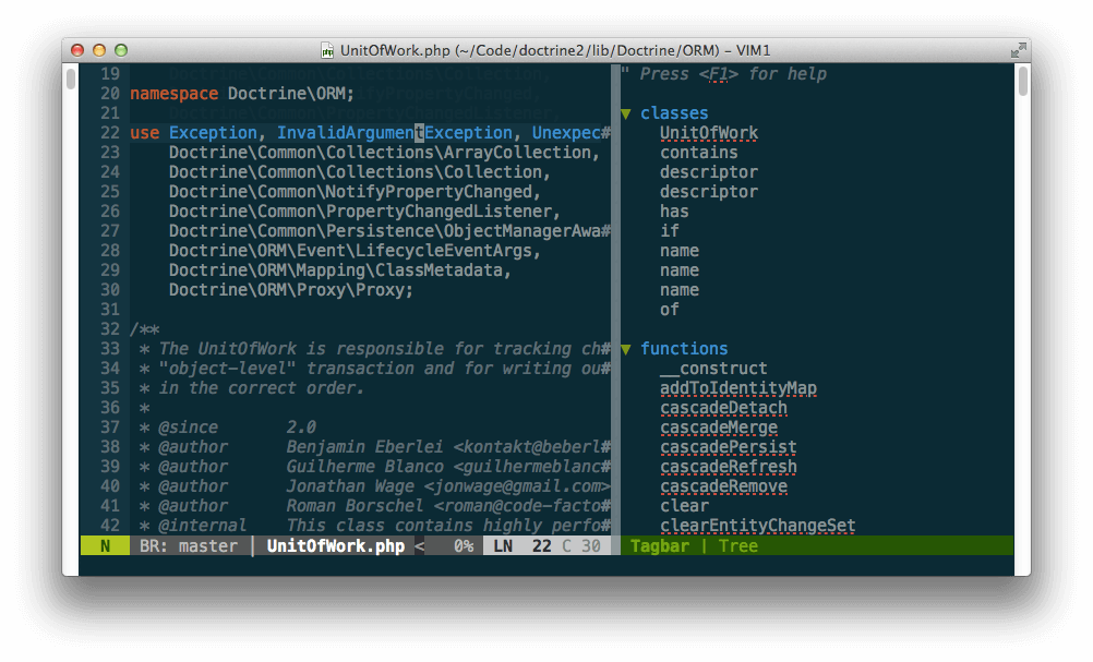 Tagbar在Vim中添加標簽生成和導航Tagbar需要exuberant-ctags,并會自動創(chuàng)建一個用戶打開的文件標簽。它還提供了一個面板,以便輕松瀏覽標簽。